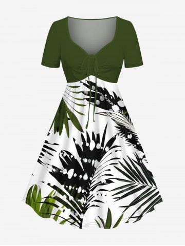 Ombre Tropical Leaf Spotted Print Plus Size Matching Hawaii Beach Outfit For Couples - Green