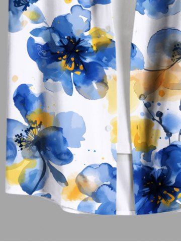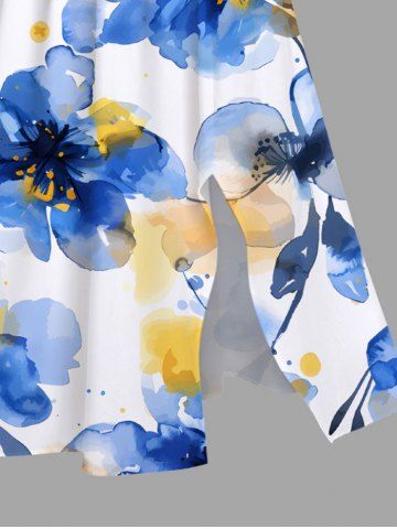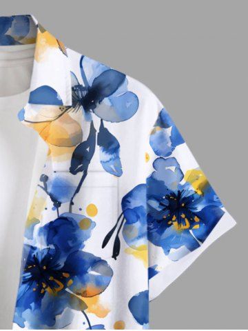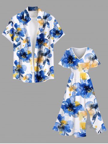 Ombre Watercolor Flower Print Plus Size Matching Hawaii Beach Outfit For Couples - White