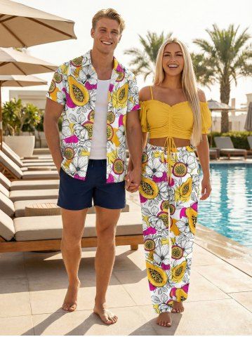 Matching Hawaiian Outfits > Papaya Fruit Flowers Print Plus Size Matching Hawaii Beach Outfit For Couples