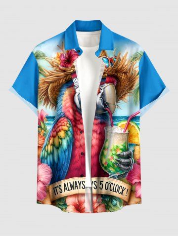 Parrot Fruit Juice Hibiscus Flowers Print Plus Size Matching Hawaii Beach Outfit For Couples - Sky Blue