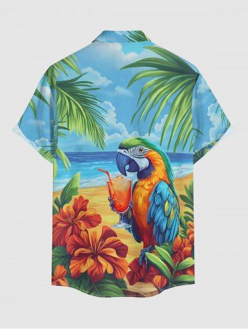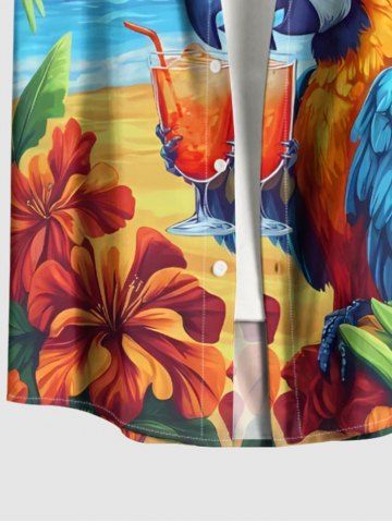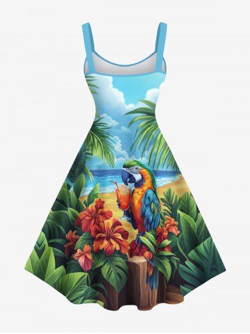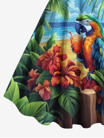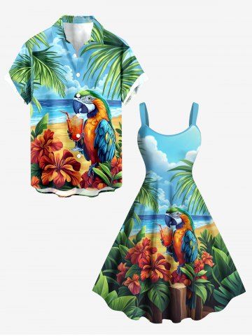 Matching Hawaiian Outfits > Parrot Tropical Flowers Leaf Fruit Juice Seascape Print Plus Size Matching Hawaii Beach Outfit For Couples