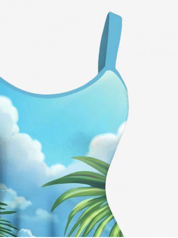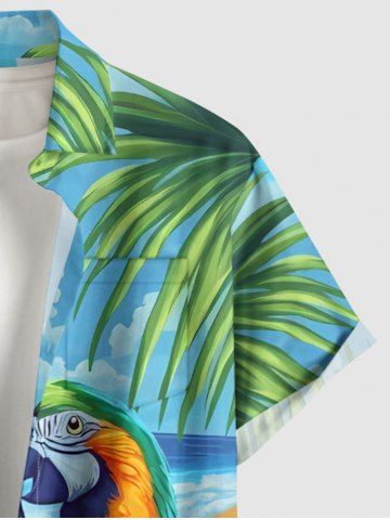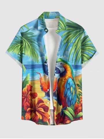 Parrot Tropical Flowers Leaf Fruit Juice Seascape Print Plus Size Matching Hawaii Beach Outfit For Couples - Light Blue