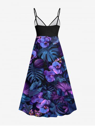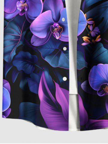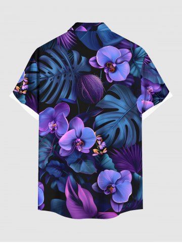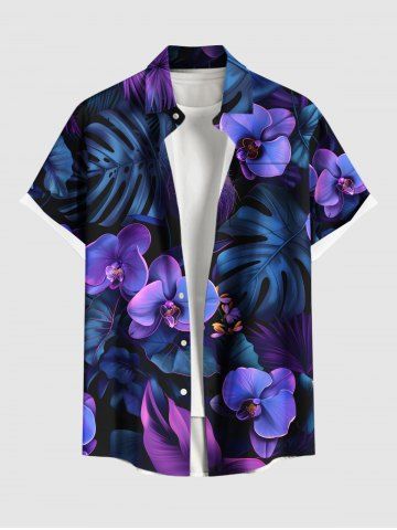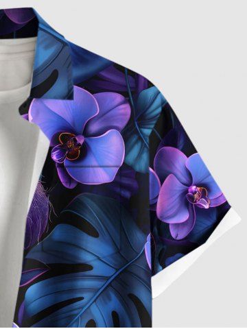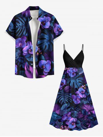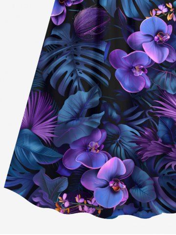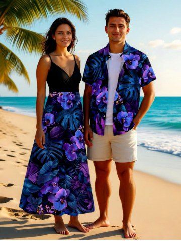 Matching Hawaiian Outfits > Phalaenopsis Flowers Tropical Leaf Print Plus Size Matching Hawaii Beach Outfit For Couples