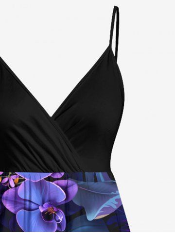 Phalaenopsis Flowers Tropical Leaf Print Plus Size Matching Hawaii Beach Outfit For Couples - Black