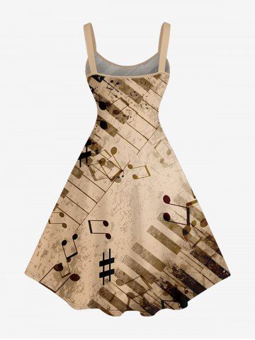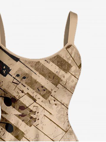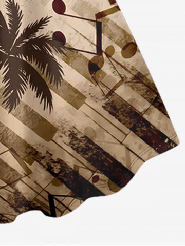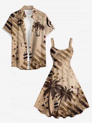 Piano Music Notes Coconut Tree Print Plus Size Matching Hawaii Beach Outfit For Couples - Tan