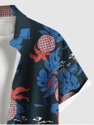 Pineapple Cat Tropical Leaf Print Plus Size Matching Hawaii Beach Outfit For Couples - Blue