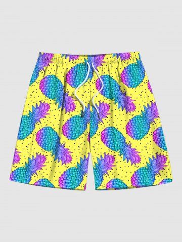 Pineapple Pin Dot Print Plus Size Matching Hawaii Beach Outfit For Couples - Yellow