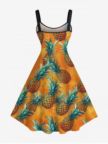 Pineapple Print Plus Size Matching Hawaii Beach Outfit For Couples - Orange