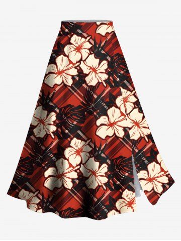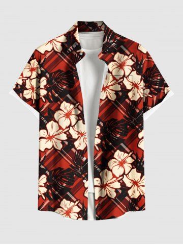 Plaid Hibiscus Flower Tropical Leaf Print Plus Size Matching Hawaii Beach Outfit For Couples - Red