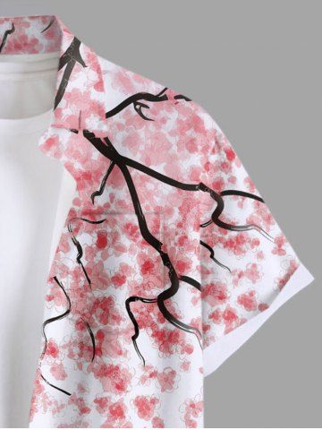 Matching Hawaiian Outfits > Plum Bossom Flower Branch Print Plus Size Matching Hawaii Beach Outfit For Couples