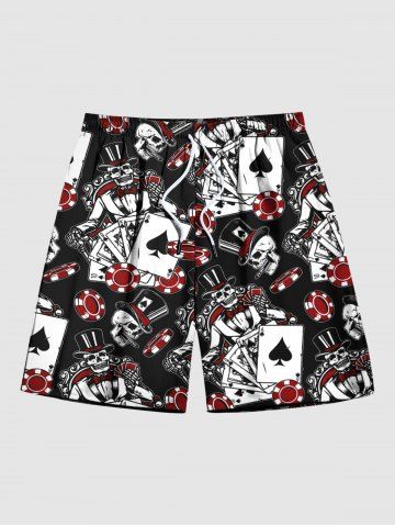 Poker Casino Chips Skull Print Plus Size Matching Hawaii Beach Outfit For Couples - Black