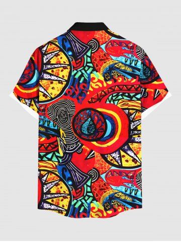 Psychedelic Pattern Sun Fire Flame Print Plus Size Matching Hawaii Beach Outfit For Couples - Red