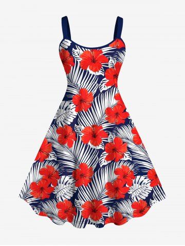 Matching Hawaiian Outfits > Red Hibiscus Flower Tropical Palm Leaf Print Plus Size Matching Hawaii Beach Outfit For Couples