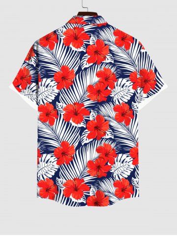 Red Hibiscus Flower Tropical Palm Leaf Print Plus Size Matching Hawaii Beach Outfit For Couples - Red