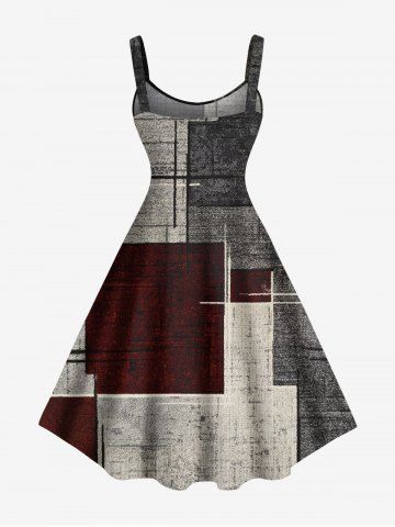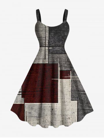 Retro Geometric Graphic Patterns Print Plus Size Matching Hawaii Beach Outfit For Couples - Gray