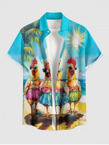 Rooster Coconut Tree Sun Print Plus Size Matching Hawaii Beach Outfit For Couples - Sky Blue