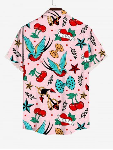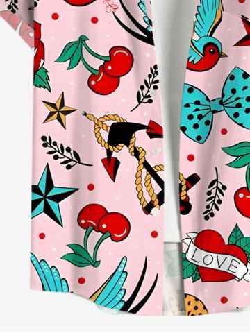 Rose Flower Bird Cherry Bowknot Heart Anchor Print Plus Size Matching Hawaii Beach Outfit For Couples - Light Pink