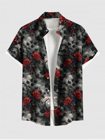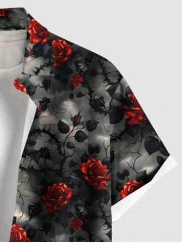 Rose Flower Leaf Tie Dye Print Plus Size Matching Hawaii Beach Outfit For Couples - Black