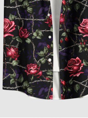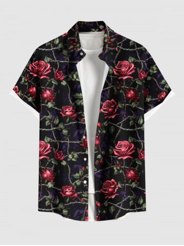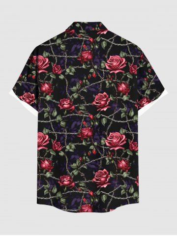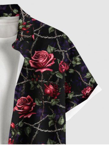 Rose Flower Leaf Vine Branch Print Valentines Plus Size Matching Hawaii Beach Outfit For Couples - Black