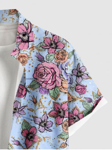Rose Flower Print Plus Size Matching Hawaii Beach Outfit For Couples - Sky Blue
