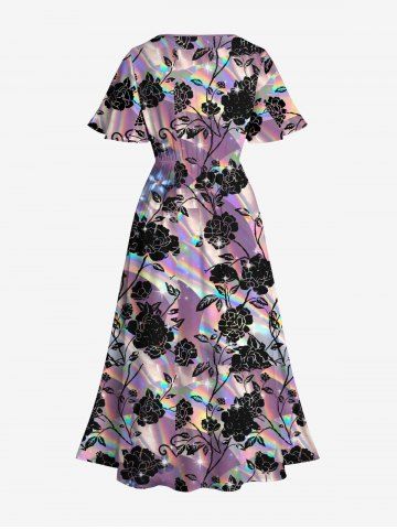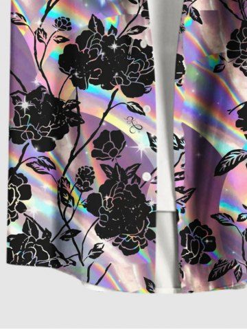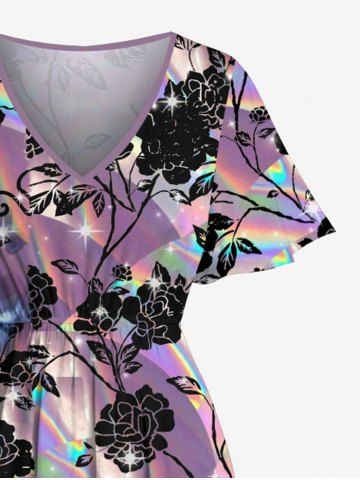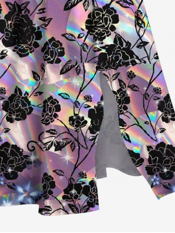 Rose Flower Rainbow Print Plus Size Matching Hawaii Beach Outfit For Couples - Purple