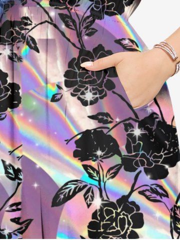 Matching Hawaiian Outfits > Rose Flower Rainbow Print Plus Size Matching Hawaii Beach Outfit For Couples