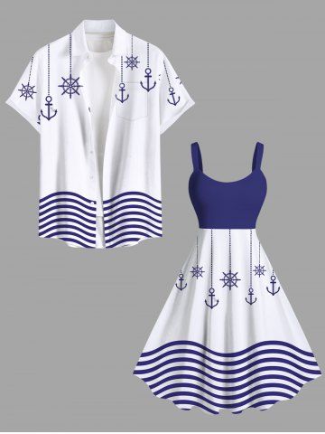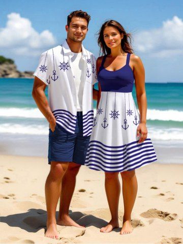 Matching Hawaiian Outfits > Sea Waves Anchor Ship Rudder Tassel Cruise Print Plus Size Matching Hawaii Beach Outfit For Couples