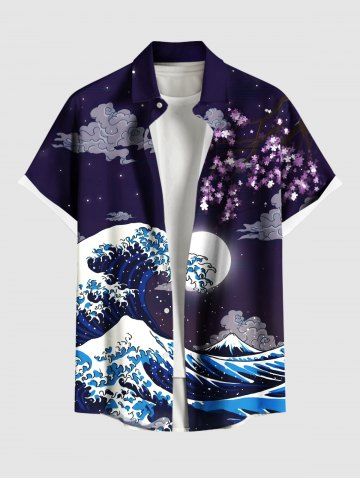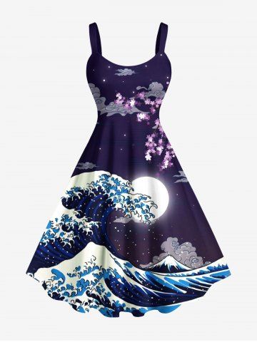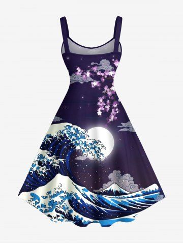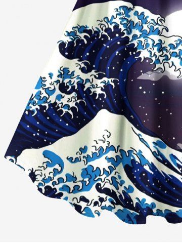 Sea Waves Moon Cloud Print Plus Size Matching Hawaii Beach Outfit For Couples - Concord