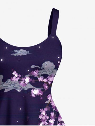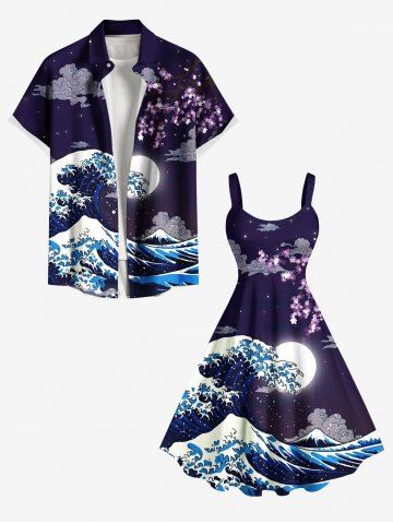 Matching Hawaiian Outfits > Sea Waves Moon Cloud Print Plus Size Matching Hawaii Beach Outfit For Couples