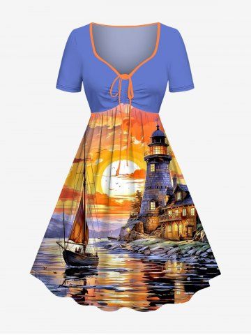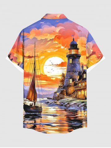 Matching Hawaiian Outfits > Seascape Sun Cloud Lighthouse Ship Print Plus Size Matching Hawaii Beach Outfit For Couples