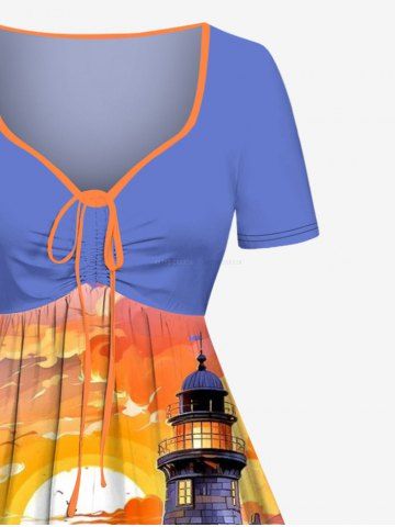 Seascape Sun Cloud Lighthouse Ship Print Plus Size Matching Hawaii Beach Outfit For Couples - Orange