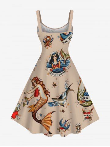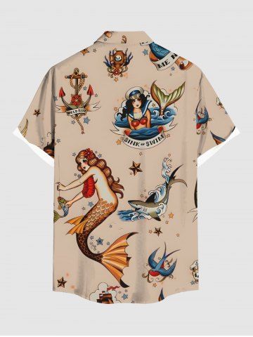 Shark Anchor Mermaid Stars Print Plus Size Matching Hawaii Cruise Beach Outfit For Couples - Apricot