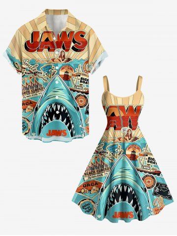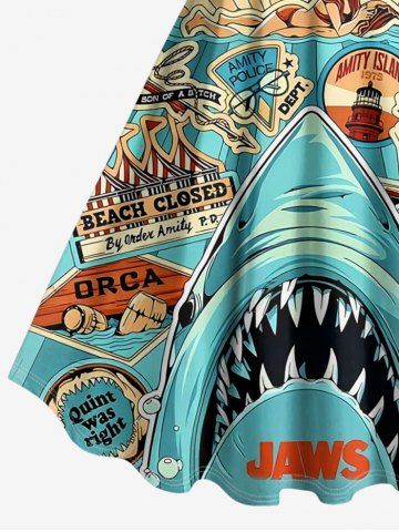 Matching Hawaiian Outfits > Shark Seascape Print Plus Size Matching Hawaii Beach Outfit For Couples