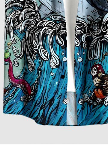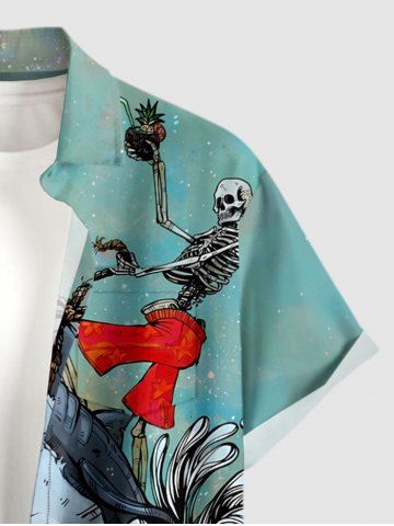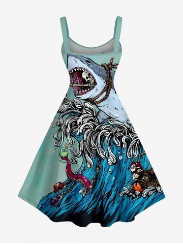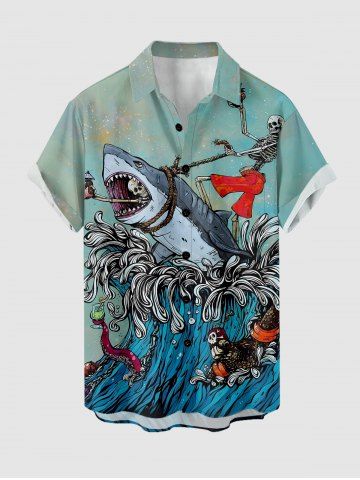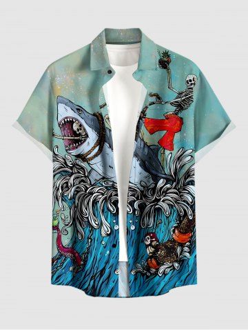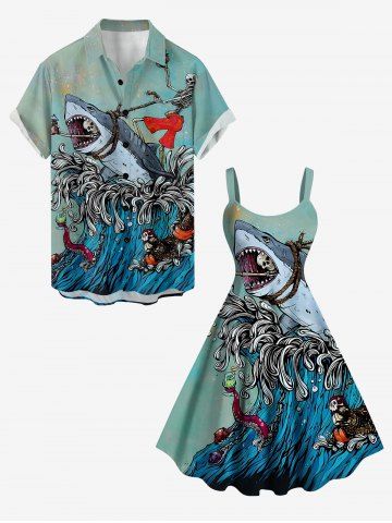 Matching Hawaiian Outfits > Shark Skull Skeleton Sea Waves Print Plus Size Matching Hawaii Beach Outfit For Couples