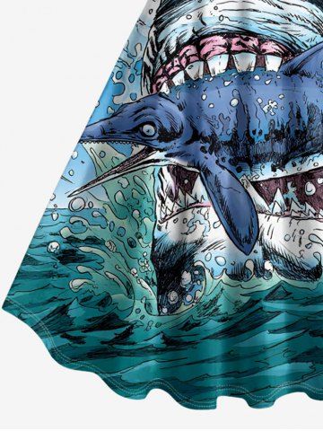Sharks Sea Waves Print Plus Size Matching Hawaii Beach Outfit For Couples - Light Blue