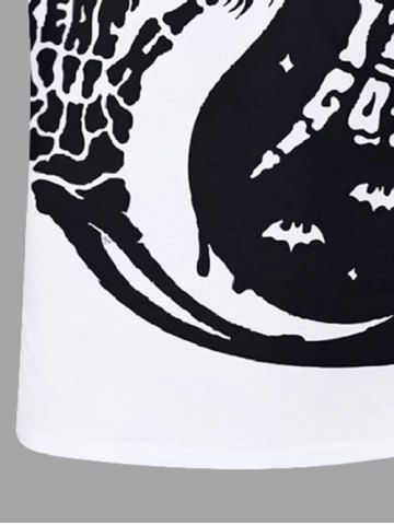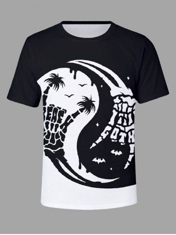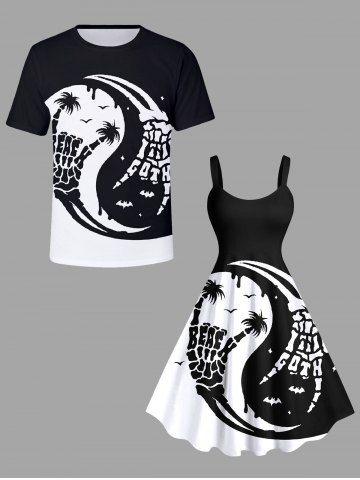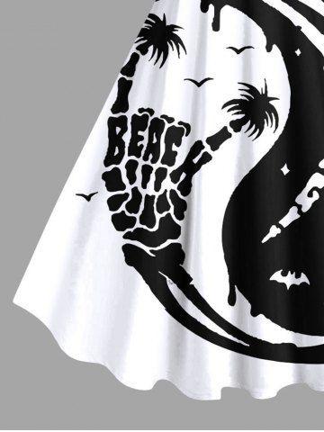 Skeleton Hand Tai Chi Coconut Tree Bat Print Plus Size Matching Hawaii Beach Outfit For Couples - Black