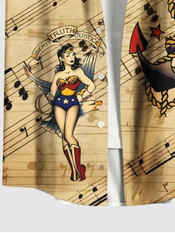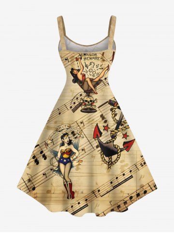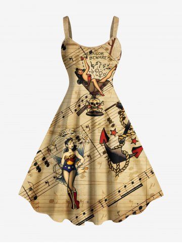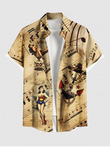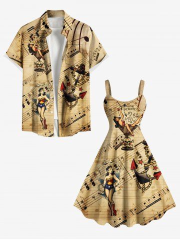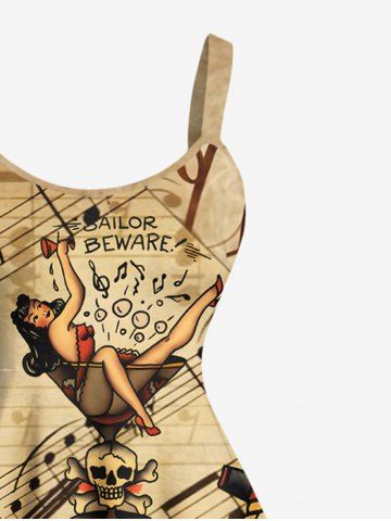 Skull Anchor Musical Notes Lady Print Plus Size Matching Hawaii Beach Outfit For Couples - Apricot