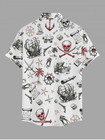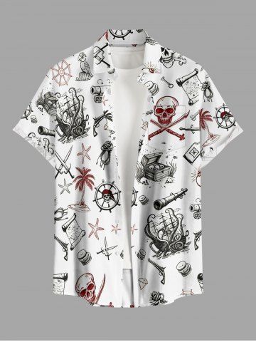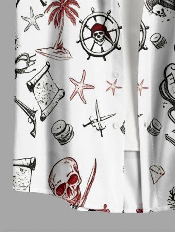 Matching Hawaiian Outfits > Skull Coconut Tree Ship Rudder Starfish Cruise Print Plus Size Matching Hawaii Beach Outfit For Couples