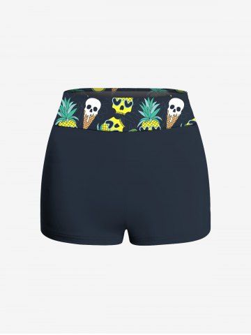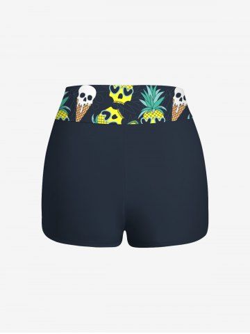 Skull Ice Cream Pineapple Avocado Print Shirt Swimsuit Plus Size Matching Hawaii Beach Outfit For Couples - Black