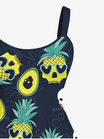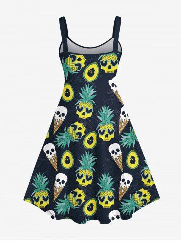 Skull Pineapple Heart Ice Cream Print Dress and Button Shirt Plus Size Matching Hawaii Beach Outfit For Couples - Black