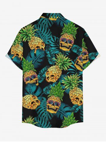 Skull Pineapple Tropical Leaf Print Plus Size Matching Hawaii Beach Outfit For Couples - Deep Green
