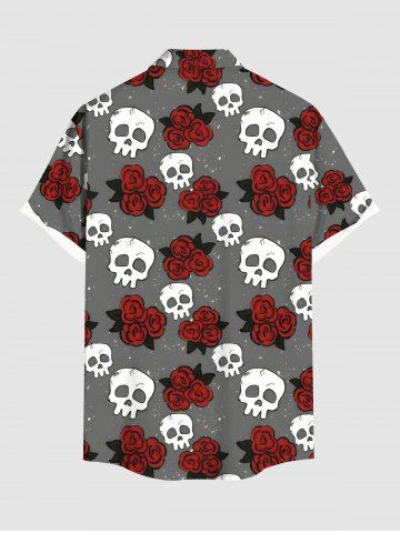 Skull Rose Flower Galaxy Print Shirt Swimsuit Plus Size Matching Hawaii Beach Outfit For Couples - Gray