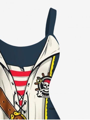 Skull Ship Rudder Knife Pirate Costume Print Plus Size Matching Hawaii Beach Outfit For Couples - Midnight Blue