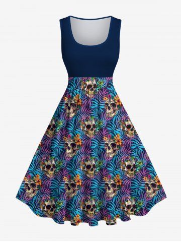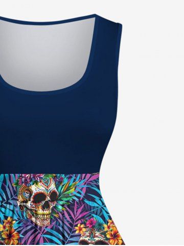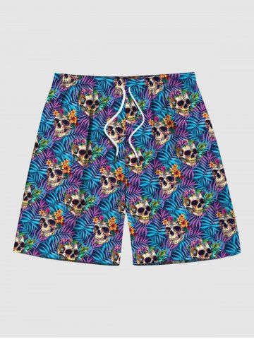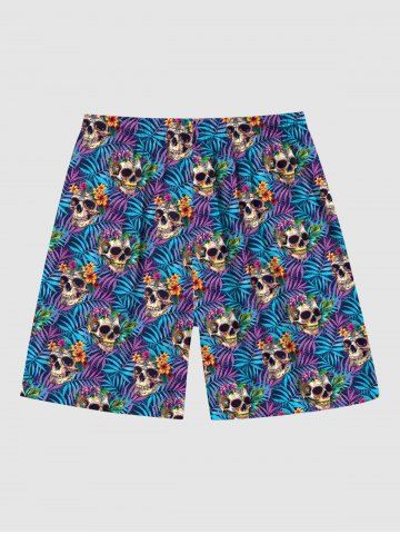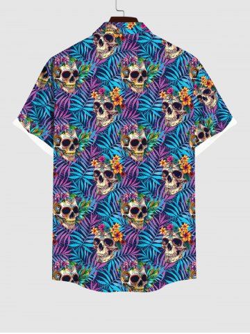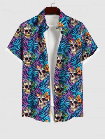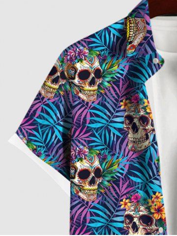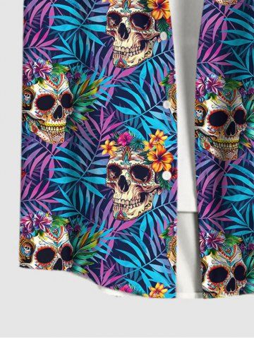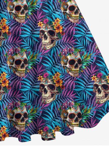 Skulls Coconut Tree Palm Leaf Flowers Print Plus Size Matching Hawaii Beach Outfit For Couples - Multi-a