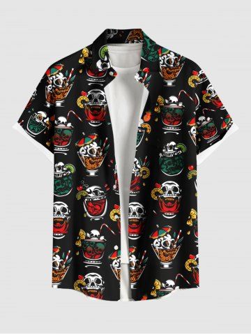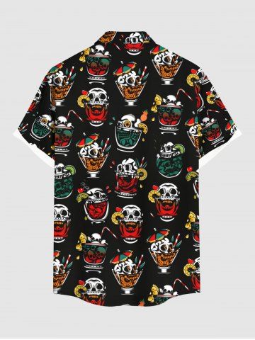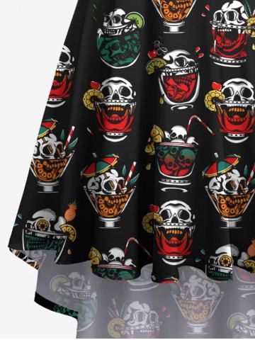 Skulls Colorful Fruit Juice Print Plus Size Matching Hawaii Beach Outfit For Couples - Black