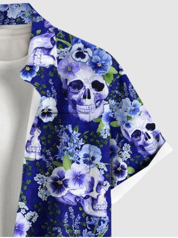 Skulls Flowers Leaf Print Plus Size Matching Hawaii Beach Outfit For Couples - Blue