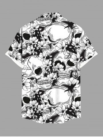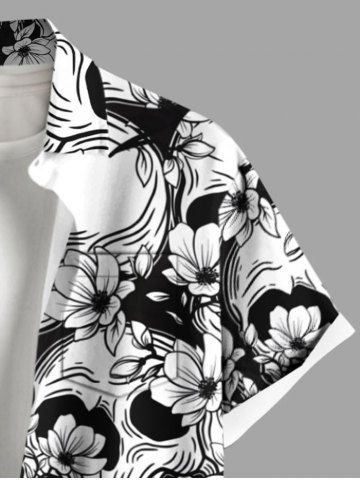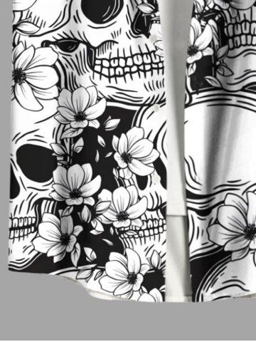 Skulls Flowers Print Plus Size Matching Hawaii Beach Outfit For Couples - Black