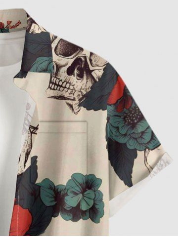 Skulls Leaf Flower Print Plus Size Matching Hawaii Beach Outfit For Couples - Light Coffee