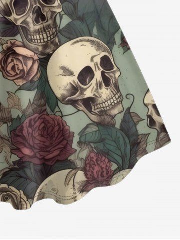 Skulls Rose Flower Leaf Print Plus Size Matching Hawaii Beach Outfit For Couples - Light Green