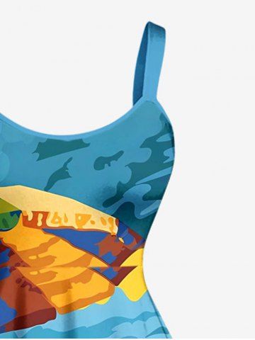 Sky Sea Sunshade Turtle Print Plus Size Matching Hawaii Beach Outfit For Couples - Sky Blue
